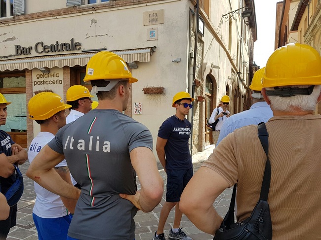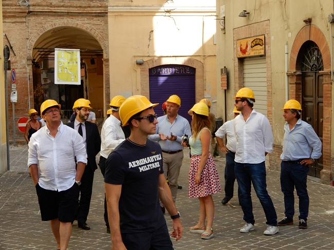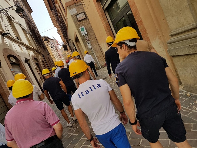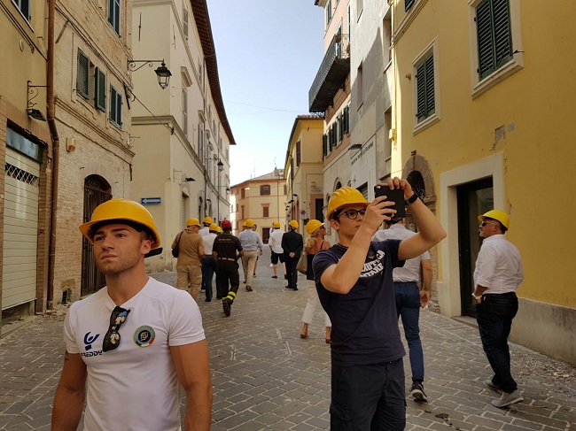 L’attività della Federazione Ginnastica d’Italia non si ferma mai, neppure ad agosto. Il presidente Gherardo Tecchi, infatti, ha preso parte oggi ad un’iniziativa benefica, promossa dal Consigliere federale Paolo Principi, in favore delle zone terremotate di Camerino. Il numero uno della Ginnastica italiana, originario di Fano, ha raggiunto la nota località della provincia maceratese – colpita, esattamente un anno fa, da un prolungato evento sismico – insieme ad una folta delegazione, composta da dirigenti come il team manager della sezione di Artistica maschile, Andrea Facci, dal consigliere nazionale Fedele Massimo Anglani e da Marco Baioni, Presidente del Comitato regionale FGI Marche, nonché da una rappresentativa di ginnasti in raduno collegiale estivo tra Fermo e Porto San Giorgio. Lo stesso Principi, ancora in convalescenza dopo l’infortunio al tendine d’Achille d’inizio anno a Stoccarda, ha raggiunto il cav. Tecchi, insieme ai compagni Marco Lodadio e Tommaso De Vecchis, e ai commilitoni del Gruppo Sportivo di Vigna di Valle, Andrea Cingolani e Ludovico Edalli, presso la sede della Contram, l’azienda di trasporto pubblico locale, per incontrare il Sindaco Gianluca Pasqui. Purtroppo la sede del Comune è ancora inagibile, circoscritta in quella zona rossa, nel centro storico, crollata la notte del 24 agosto, in seguito alla forte scossa con epicentro ad Accumuli, passata alla storia per aver quasi completamente distrutto la città di Amatrice. Il 26 e il 30 ottobre seguirono poi altri due terremoti che da Ussita e Norcia fecero tremare tutto il Centro Italia. A Camerino, con gli atleti italiani in preparazione per i Mondiali di Montreal, sono intervenuti anche il Responsabile delle Squadre Nazionali Maurizio Allievi e, soprattutto, quello del settore giovanile Sergiy Kasperskyy, russo di nascita ma marchigiano di adozione, visti i suoi lunghi e vincenti trascorsi alla Virtus Pasqualetti di Macerata. L’abbraccio tra la Federginnastica e l’amministrazione camerte si è arricchita poi della presenza di una schiera di Assessori e del nuovo Rettore dell’UNICAM, Claudio Pettinari. Nel pomeriggio il gruppo si è spostato proprio nella red zone, con un’autorizzazione speciale del primo cittadino, dove sono più evidenti i danni, a cominciare dal campanile della chiesa di Santa Maria in Via. La visita è proseguita poi nel Complesso Sportivo ‘Sergio Sabbieti’, in località Le Calvie, un vero e proprio campus universitario all’americana, che ci racconta di un territorio ricco di eccellenze, malgrado le ultime devastazioni naturali. La FGI e l’Aeronautica Militare hanno voluto testimoniare la propria vicinanza alle popolazioni colpite dal sisma, portando all’attenzione delle istituzioni locali la proposta di un progetto per il 2018 utile a raccogliere fondi per la ricostruzione.